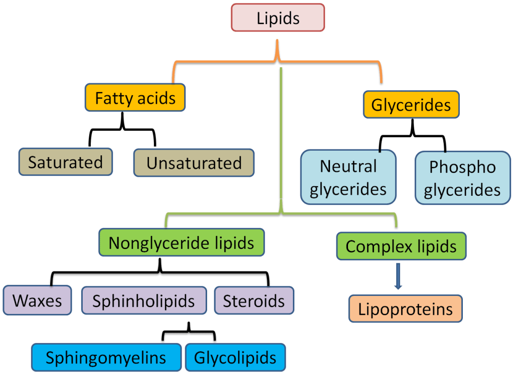 In this topic, I have learnt that lipids are biomolecules that are soluble in organic solvents. There are two types of lipids that are non-polar lipids and polar lipids. Non-polar lipids are act as energy storage and polar lipids are the basis of bilayers. Lipids are classified into several groups that are fatty acids, triacylglycerols, glycerophospholipids, sphingolipids and isoprenoids.